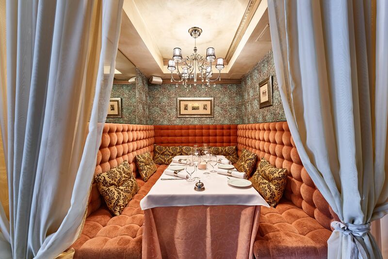 Для усамітнення завжди можна зарезервувати Приват-залу, інтер'єр якої допрацьовувався роками і сьогодні еклектика Велюр залишає відчуття гармонійного тандему витонченої атмосфери історичних часів та сучасних технологій.